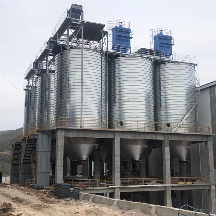接收与清理设置在筒仓中央该形式筒仓一般采用对称排列,提升机井架固定,经过提升后的物料通过仓顶溜管进人筒仓。这种形式省去了仓顶输送设备和上通廊,从而节省了建造费用,缩短了建造工期。对于贮存时间要求较长的大型粮库,则应根据物料的流向、场地情况、工艺要求等合理地配置投料口、工作塔、烘干塔及苏州钢板仓的位置。国华钢板仓介绍了这几种常见的进料形式,实际中可将各种形式相互组合,相互渗透,根据实际情况合理搭配,灵活选用。